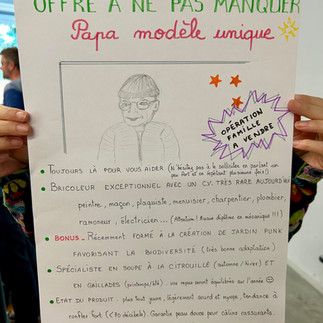 Durant cet atelier, petits et grands vont s’amuser à « vendre » un membre de leur famille !